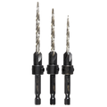 Milwaukee's 3PC Countersink Bit Set features #6, #8 and #10 Countersinks. The bits pre-drill and countersink. The 1/4" Quick Change Hex Shanks allow for quick size changes. The drill bit length is adjustable to allow for precise depth control.