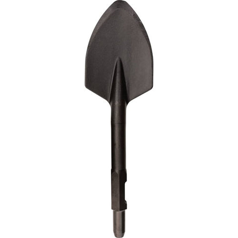 The Makita 4-3/4 x 19 Pointed Spade is ideal for breaking clay, dirt and hard ground when used with a Makita demolition hammer that accepts bits with Makita large shank (demolition hammer sold separately). The Spade is manufactured using state-of-the-art technology, and is CNC machined and forged from industrial-grade alloy material for increased durability. Each Spade is shot-peened for added strength and increased surface hardness, and includes a clear-coat to help prevent corrosion.