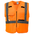 The Milwaukee ANSI type R class 2 high visibility safety vest is designed to carry more. The high visibility safety vest has 10 pockets including a clear ID holder and internal pocket for additional storage. The safety vest has a quick internal size adjustment providing a better fit as well as a durable pass-through slit for fall protection gear. This allows the vest to be worn in the summer over a t-shirt or in the winter over a jacket. A zipper closure on the safety vest delivers ultimate job site security. The high visibility reflective vests are required when working around traffic going 25 mph or working around heavy machinery. This includes construction, road construction, traffic direction, utility crews, and survey crews. Yellow and orange color options are available, as well as CSA compliant safety vests.