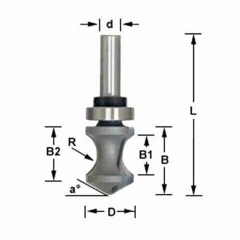 Intended for forming and edging internal hand-holds and cutouts in a single pass this bit will also cut a soft bullnose on any exposed edge. Available with a shank-mounted ball bearing for cuts guided by a template. Use in a CNC or other automatic router. Bearing equipped bit can be used in a handheld or table-mounted router. Plunge cuts on router table are not recommended.
