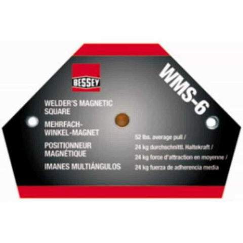 Bessey WMS-6 Multi-Angle Magnetic Squares - 52 Lbs. Pull Mfg # WMS-6 Features: * Quality magnetic multi-angle square for fast, simple set-up * Size of magnet approx. 4" x 2.5" x .50" Pull: 52 LBS Nominal Dimensions: 4" x 2-1/2" x 9/16" Pre-set Angles: 30/45/60/75/90 Degrees Bessey WMS-6 Multi-Angle Magnetic Squares - 52 Lbs. PullMfg # WMS-6Features: Quality magnetic multi-angle square for fast, simple set-upSize of magnet approx. 4" x 2.5" x .50"Pull: 52 LBSNominal Dimensions: 4" x 2-1/2" x 9/16"Pre-set Angles: 30/45/60/75/90 Degrees