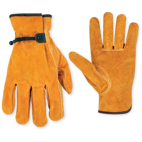 This superior quality, top grain cowhide driver work gloves have a leather palm patch and a hook-and-loop closure wrist strap.