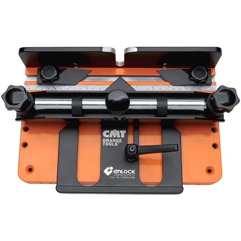 The innovative CMT-Enlock joining system is designed to build the strongest T joints, Mitre joints and Widening joints using the patented E15 and E10 dovetail keys. The dovetail slots in each member to be joined are machined quickly and accurately using the CMT-Enlock jig. You simply clamp your workpiece in the jig, set your bit depth and you are ready to rout. The jig features strong cast aluminium construction through-out the body, top plate, stops and clamping bar producing perfect and strong joints for the life!