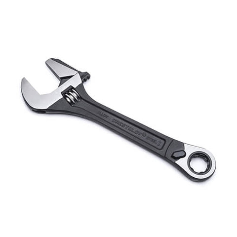 - Traditional 8 adjustable wrench with laser etched SAE/MM scales and a wide jaw opening