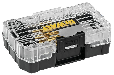 Our IMPACT READY titanium drilling accessories now come in ToughCase+ system, the latest addition to our accessory storage line. The ToughCase+ system is a connectable case system designed to optimize storage space and keep your bits organized. The patented bit-bar design allows for easy bit removal and the clear lid allows you to see inside at a glance. Constructed from one solid piece of heavy-duty metal, DEWALT IMPACT READY titanium drill bits are up to 5 times more durable than 2-piece conventional bits. A patented web taper helps to increase bit strength, and a proprietary PILOT POINT tip delivers speed and clear, burr-free holes with helps to reduced bit walking. Ideal for metal, wood, and plastic.