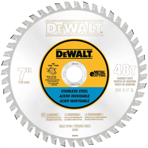 - Product Name - 12" x .069" Stainless Steel Metal Cutting Circular Saw Blade, 80 Teeth, 1" Arbor, 10 Degree Hook Angle, .085" Kerf, MTCG Tooth Grind, DEWALT DWA7739