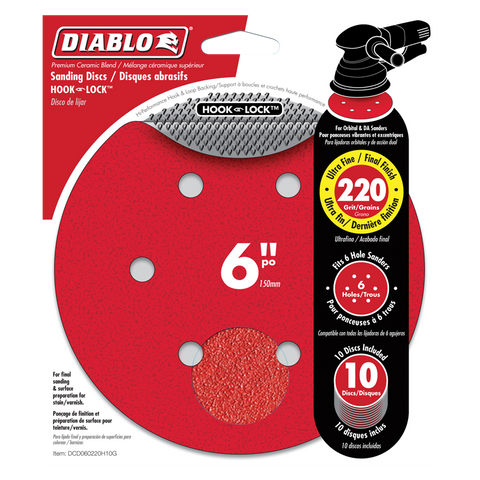 Diablo Tools 6" 220-Grit Hook & Lock Ros Sanding Discs (10-Pack)