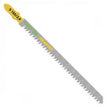 The new S 105/2.8 jigsaw blade is made of high-grade HCS tool steel and extremely sharp Japanese-style teeth for highly precise cuts in wood. This blade features a reversed rake tooth design to prevent splintering by cutting on the down stroke of the jigsaw.