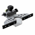 When used with the Festool OF 1400 Router the Parallel Edge Guide allows you to rout up against or perfectly parallel to the material edge delivering precise dados flutes grooves ploughs rabbets and profiles. Fine-adjustment control allows you to dial in the distance from the material edge in increments of 1/10mm for ultra-precise routing. Dust extraction hood enables ultra-efficient dust extraction saving valuable cleanup time. The Edge Guide is constructed from durable cast aluminum and includes fiber-reinforced plastic thumbscrews for easy adjustment and a long service life. Attaches quickly and easily using integrated thumbscrews and two steel rods included in the router's scope of delivery.