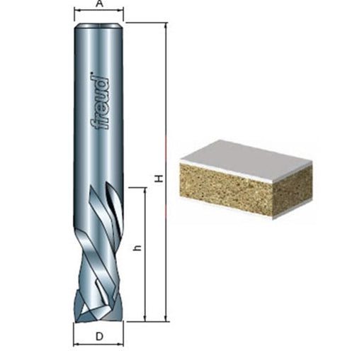 - Combination of up and down shear flutes eliminate chipping on both sides of double-sided veneers or laminated materials for a fine finish.