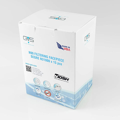 The GVS N31000 Fully Adjustable N99 Respirator is a comfortable and durable N99 mask, with adjustable nose clip and straps for a superior fit. There are two main classes of filtering facepieces - N95 & N99. The Segre N31000 sits in one of the highest classifications for a mask - N99. In order to achieve this classification, tests are performed on the mask to measure its filtering efficiency and the maximum level of inward leakage. The mas is also subjected to breathing resistance and skin compatibility tests. All Segre masks are NIOSH approved.