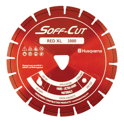 The Husqvarna 582827001 Excel Red XL6.5-3000 Blade 6.5 in. x .100 in. Blade/Skid Plate is an ultra early entry saw blade designed for use in hard aggregate, non-abrasive sand, and is designed to operate with the Husqvarna Soff-Cut 150 Saw.