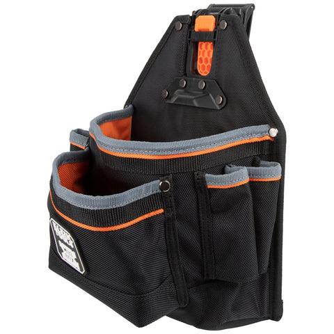 Klein ft. 9 Pocket Tool Pouch keeps tools where they are needed, when they are needed. This pouch is great for carrying a variety of tools for everyday jobs. Attaches to any belt up to 2.5-Inch wide and seamlessly connects to Klein ft.s Modbox Mobile Workstation for easy storage and accessibility.