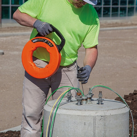 - Durable, high-carbon strength 1/8-Inch wide steel fish tapes are firm yet flexible for long runs and large wire pulls