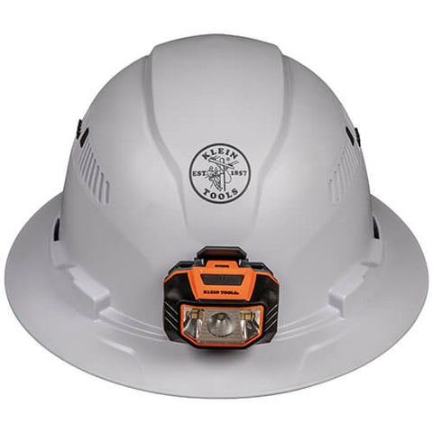 Klein 60407 Hard Hat, Vented, Full Brim with Headlamp, White