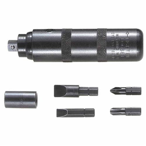 This Klein replacement bit set includes four 5/16-Inch drive screwdriver bits. These are replacement bits for the Klein Reversible Impact-Driver, which is great for turning rusted, frozen, or other stubborn screws. The replacement bit sizes are two regular slotted tips and two Phillips-tip bits.