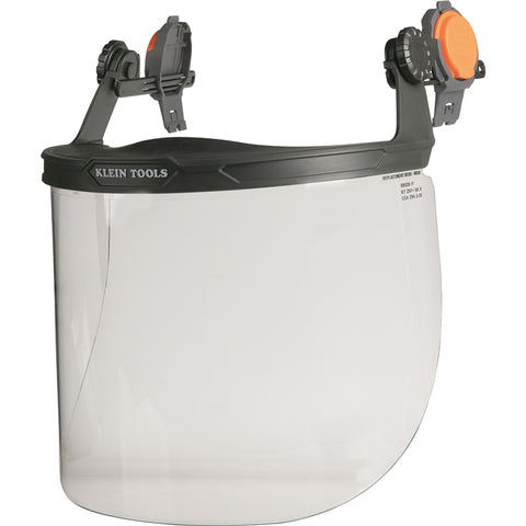Klein Tools Face Shields offer a combination of safety, comfort, fit and convenience. High-impact tested with proper coverage to protect from small to large objects. Lightweight construction, low profile designs (clear, tinted and mesh models) specifically fit safety helmets, cap style and full brim hard hats. Secure attachment to universal mounts; adjustable modular design allows for use with hearing protection and headlamps. High-optical quality; anti-fog and scratch resistant coatings ensure enhanced visibility.