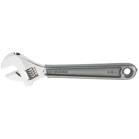 Klein Tools' 4-Inch Adjustable Wrench (standard capacity) is made of forged, heat-treated alloy steel for maximum strength and light weight. The precision-machined jaws are individually chosen and assembled by hand to ensure smooth operation. Contoured, plastic-dipped handles make them comfortable to use.