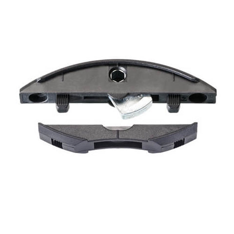 Clamex P Medius complements the Clamex P-14 connecting fittings for use in shelf units where two shelves meet the dividing panel at the same height. The dividing panel connection Clamex P Medius consists of two parts with different installation depths. The lever part is installed in the shelf, anchored in a 14 mm deep P-System groove. Thanks to its installation depth of just 10 mm and crescent-shaped cut out, the second part can be fitted back-to-back in a dividing panel measuring just 16 mm.