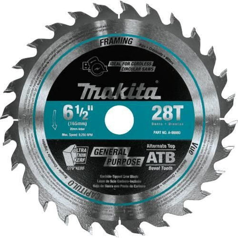 The Makita 28T Carbide-Tipped Saw Blade is the ideal accessory for the Makita 6-1/2" Plunge Circular Saw (model XPS01, sold separately). With the XPS01, the A-99960 is an ideal blade rough cutting applications in wood. The Blade features high-grade carbide tips for improved durability, and is engineered for smoother cutting.
