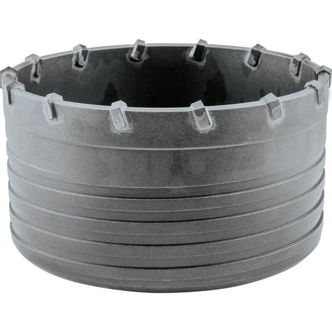 Makita rotary hammer core bits feature asymmetrical tungsten carbide teeth for faster drilling and longer life. Bit is part of a 2-piece core bit system that increases versatility and productivity. Core bits have larger diameters than standard carbide bits, allowing smaller hammers to drill larger holes. The bits are for dry drilling in concrete, block, and brick, and are ideal for drilling larger holes in masonry for piping, ventilation, and electrical installations. For increased versatility, the bit is interchangeable with Makita SDS-MAX or spline rotary hammer carbide core bit shank adaptors (sold separately).