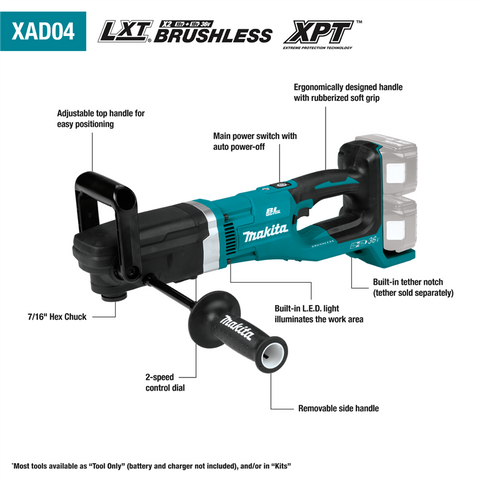 Makita XAD04Z 36V (18V X2) LXT Brushless Cordless 7/16" Hex Right Angle Drill, Tool Only