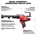 Milwaukee’s new M12 caulk and adhesive gun is the most compact and lightest weight cordless powered caulk gun on the market. Designed to be the ideal hand tool replacement, the M12 caulk gun is optimized for use with common construction sealants and adhesives. Powered by the M12 Red Lithium™ battery technology, the tool will dispense up to 150 10 oz tubes of building sealant on one charge.