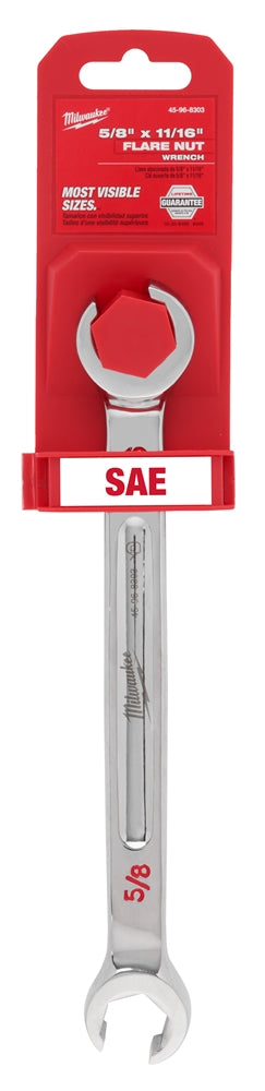 The MILWAUKEE 5/8" X 7/16" Double End Flare Nut Wrench offers easy identification with ink-filled size labels for quick distinction between SAE and metric wrenches. The slim profile open ends provide better access to hard-to-reach line nuts and hex bolt heads. The Comfortable I-Beam Handle Design allows superior user comfort, even while applying high torque. Milwaukee stands behind its products and offers a Lifetime Guarantee on all of our Mechanics Hand Tools.