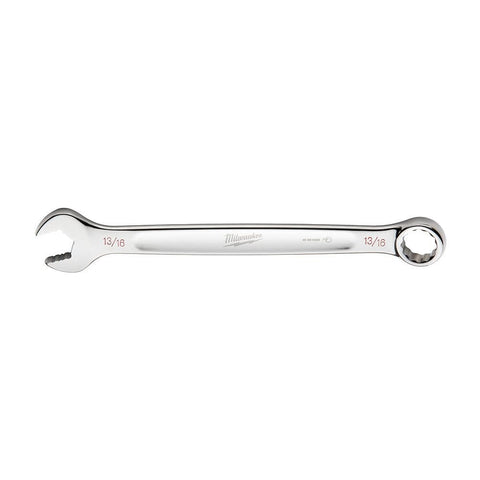 The MILWAUKEE 13/16 in. SAE Combination Wrench gets 25% more torque than smooth-faced wrenches with its MAXBITE Open-End Grip. In addition to providing increased torque, MAXBITE reduces rounding and stripping of nuts and bolts. This wrench is built from the ground up with an I-Beam handle for optimized comfort and durability. Ink-filled size labels allow for easy size identification and quick distinction between SAE and metric sets. The MILWAUKEE 13/16 in. SAE Combination Wrench features a Lifetime Guarantee.
