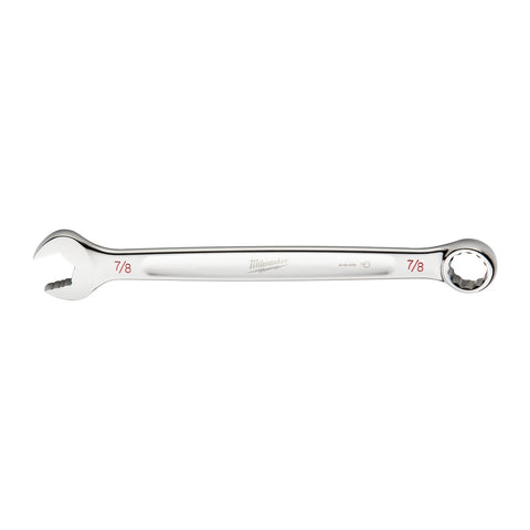 The MILWAUKEE 7/8 in. SAE Combination Wrench gets 25 percent more torque than smooth-faced wrenches with its MAXBITE Open-End Grip. In addition to providing increased torque, MAXBITE reduces rounding and stripping of nuts and bolts. This wrench is built from the ground up with an I-Beam handle for optimized comfort and durability. Ink-filled size labels allow for easy size identification and quick distinction between SAE and Metric sets. The MILWAUKEE 7/8 in.SAE Combination Wrench features a Lifetime Guarantee.