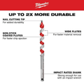 The Milwaukee 1/2 in. x 18 in. Ship auger bit drills through up to 2X the nails of competitive auger bits without needing resharpening. Drill into clean or nail-embedded wood with confidence when installing Romex wire, PEX water lines, rebar, bolts, and rope in piers, playground equipment and landscaping. The flutes are wider for maximum chip removal, even in deep holes. The polished and coated flute finish means chips won't stick to the bit, even when drilling in material that contains sap or glue. The through-center cutting design creates a more solid striking point against nails compared to the competitions' ahead-of-center and behind-center designs. The longer shaft length makes it easy to drill deeper or overhead without an extension.