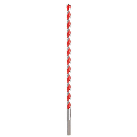 The MILWAUKEE 3/8" x 10" x 12" Carbide Hammer Drill Bit uses sharpened carbide to deliver up to 5x longer life in concrete and up to 2x faster drilling into masonry material. Engineered with a precision ground tip, these Milwaukee drill bits deliver faster starts and less walking in concrete, brick, and block. The wide flute design removes dust faster, reducing heat and delivering more holes per charge. These bits feature a 3-flat shank for better grip and control. The extended life of the Milwaukee Carbide Hammer Drill Bits provides the ideal solution for drilling in masonry materials with cordless and corded hammer drill/drivers.