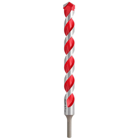 The MILWAUKEE 1" x 10" x 12" Carbide Hammer Drill Bit uses sharpened carbide to deliver up to 5x longer life in concrete and up to 2x faster drilling into masonry material. Engineered with a precision ground tip, these Milwaukee drill bits deliver faster starts and less walking in concrete, brick, and block. The wide flute design removes dust faster, reducing heat and delivering more holes per charge. These bits feature a 3-flat shank for better grip and control. The extended life of the Milwaukee Carbide Hammer Drill Bits provides the ideal solution for drilling in masonry materials with cordless and corded hammer drill/drivers.