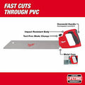 The Milwaukee 18 in. PVC/ABS saw features a tool free blade change to avoid downtime and increase efficiency in challenging applications. Complete with rubber over mold handle grip for comfort, the saw offers unmatched durability with a metal core body and clamshell handle design to prevent damage from the toughest jobsite conditions.