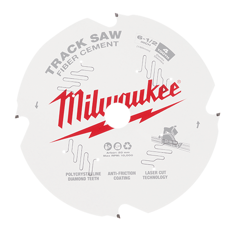 MILWAUKEE Track Saw Bladeswere specifically designed to exceed the expectations of contractors for cut quality and accuracy while also delivering a longer life even in the most demanding plunge cut applications.The blades are designed utilizing polycrystalline diamond to extend cutting life in fiber cement with up to 75x life compared to carbide teeth blades. The blades featurea Laser cut bodyand Laser Cut Vibration Slots to reduce wobble and warping. With an Anti-Friction Coating, the blades resist corrosion and gumming. A thin kerf design delivers faster cuts as well as more cuts per charge when using a cordless tool.