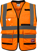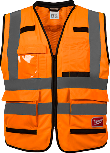 Milwaukee Tool ANSI type R class 2 high visibility performance safety vest is designed to carry more. This safety vest has 15 pockets including a clear ID holder, rear tablet pocket, and 3 internal pockets that provides added storage. Front pockets are reinforced with durable 600D tear resistant materials to withstand rough jobsite conditions. To reduce pressure around the neck Milwaukee incorporated a comfortable padded collar. The quick internal size adjustment creates a better fit to the user. Milwaukee Tool high visibility performance safety vest is required for any worker around traffic going 25 mph or work around heavy machinery. This includes construction, road construction, traffic direction, utility crews, and survey crews.