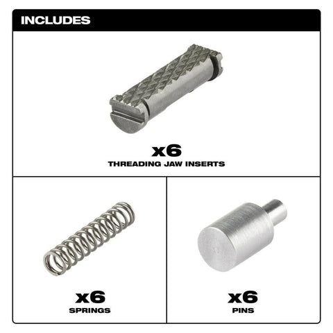 The Milwaukee Threading Jaws are intended for use in the MX FUEL Pipe Threading Machine. Coated pipe threading jaws provide the needed grip to avoid tearing the outer coating on PVC-coated pipes. Threading jaw inserts for coated pipe are sold in packages of six (6) for replacement on both the machines hammer chucks and are easily replaceable.