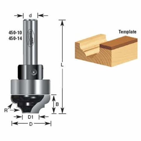 Rout decorative grooves on solid wood or MDF panels and surfaces with a handheld or CNC router. Form edges with a hand router euipped with an edge guide, or on a router table. Shank-mounted bearing allows cuts to be guided by a template mounted atop the workpiece. Can be used with a template.