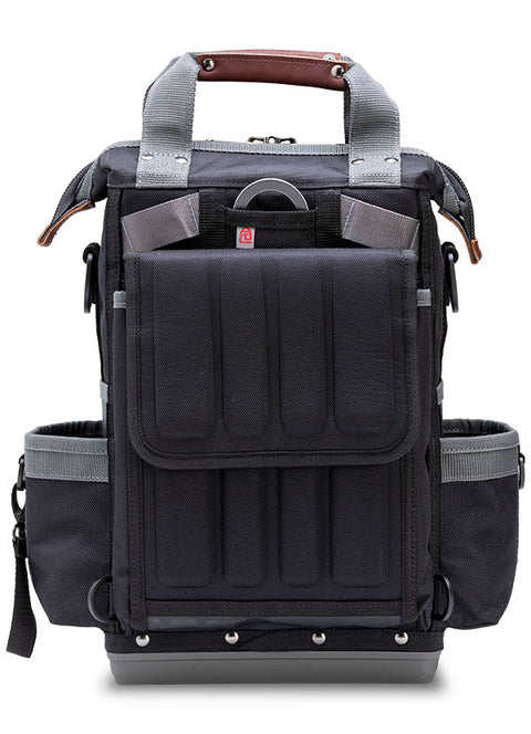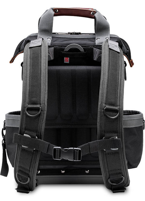 The MB4B is a gate mouth style meter bag enabling quick and easy access to the inside of the bag. Wear the MB4B over both shoulders using theΒ INCLUDED BACKPACK STRAPS, over a single shoulder via the optional padded shoulder strap (sold separately), as a sling bag using the Sling Strap (sold separately), or at your side with the leather-gripped handles. The MB4B comes with the Padded Insert Box. The divider inside the removable padded insert box can be repositioned to secure and separate a meter from other tools; three internal pockets enable further partitioning of tools, and the MB4B features 11 exterior pockets on the side and front as well as a padded tablet computer pocket on the back.You can purchase additional Padded Insert Boxes, as well as other helpful add-on items, below.
